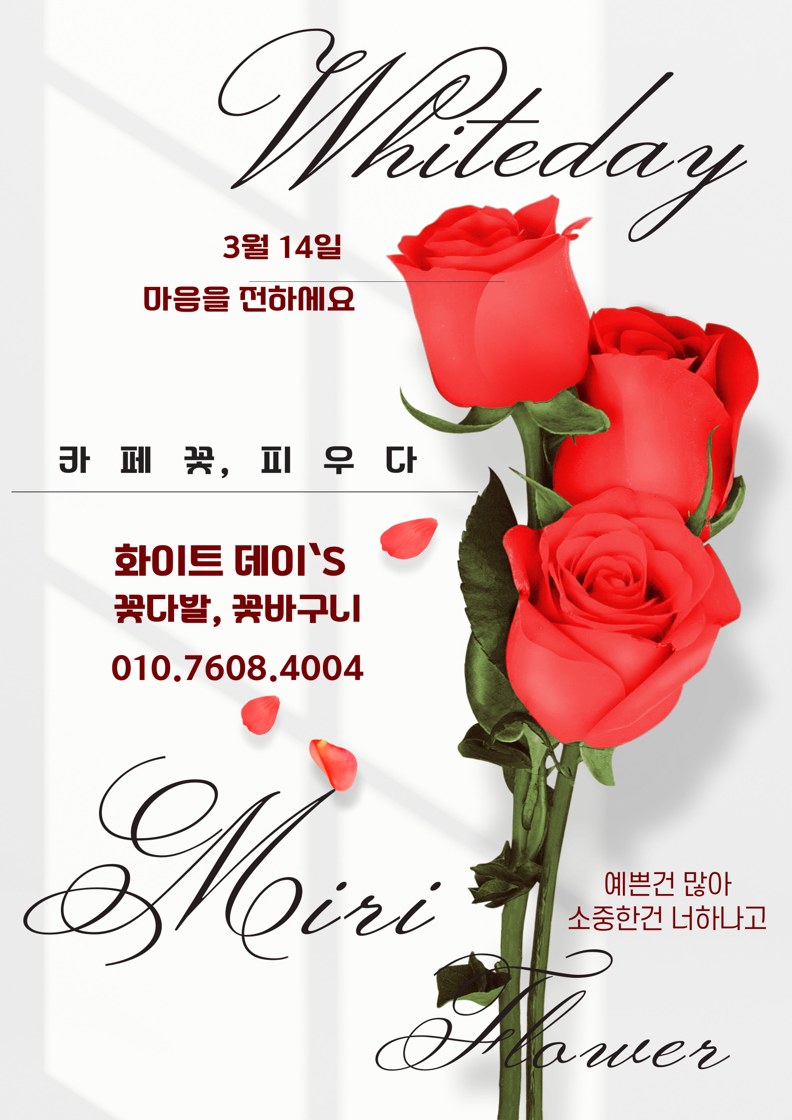 화이트데이에 꽃을 선물하는 것은 단순한 이벤트가 아니라, 상대방에게 사랑과 감사를 표현하는 아름다운 방법입니다. 어떤 꽃을 고를지 고민된다면, 상대방의 취향과 꽃말을 고려하여 선택해 보세요. 또한, 꽃과 함께 따뜻한 메시지를 전달하면 더욱 감동적인 선물이 될 것입니다. 올해 화이트데이에는 특별한 꽃 선물로 소중한 사람에게 사랑을 표현해 보세요.